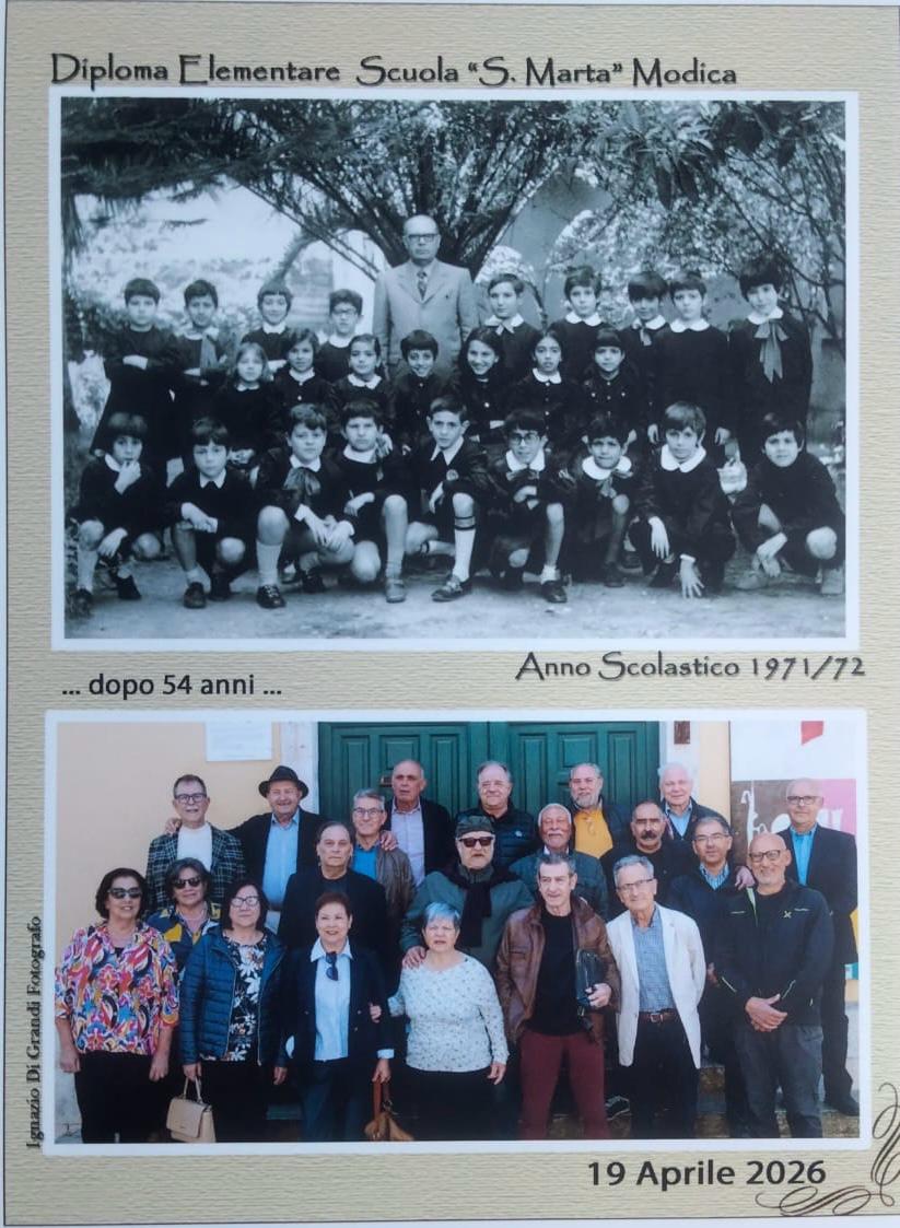 MODICA, 20 Aprile 2026 – C’è un filo invisibile che lega i banchi di scuola alla vita adulta, una fibra resistente che il tempo, pur imbiancando i capelli e solcando i volti, non riesce a spezzare. Ieri, domenica 19 aprile, sotto il sole dolce di una Donnalucata che profuma già d’estate, quel filo è tornato a tendersi con forza. I ragazzi del maestro Vincenzo Cavallo — per tutti, semplicemente, “u prufissuri” — si sono ritrovati ancora una volta, a 54 anni dal diploma di quinta elementare e a 15 anni dal loro ultimo incontro.